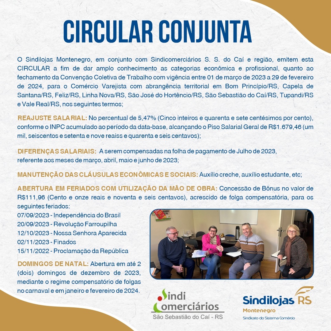 CIRCULAR CONVENÇÃO SINDILOJAS 2023